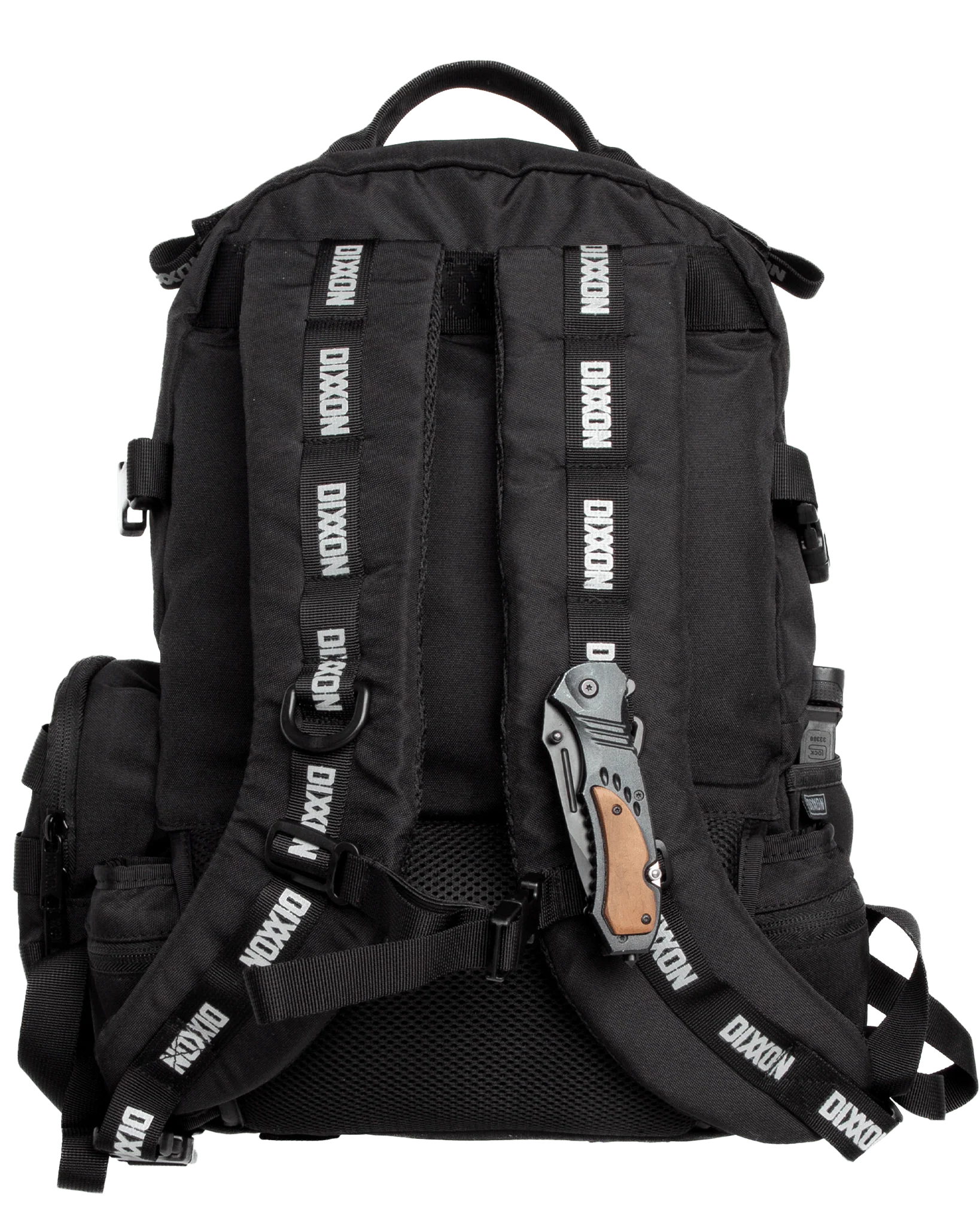 Featuring an enhanced design to aid in comfort, durability, and all-day mobility, the Tactical Backpack is the only backpack you will ever need for your rugged, action-packed lifestyle. This no-nonsense bag is constructed of a high-density polyester and includes a chest strap and buckle to keep your bag secure during movement. Reinforced webbing in the shoulder straps means you have increased durability and weight load, while a padded bottom helps to protect your goods. Complete with the attention to detail you've come to know from Dixxon, like double zippers on all compartments and plenty of pockets for storing all your necessary gear, our Tactical Backpack is the perfect companion for your next outdoor adventure.
