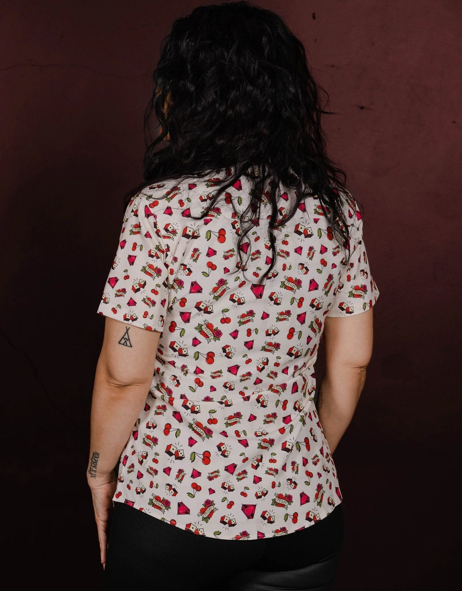 - Red, green, and white cherries, diamonds, dice and "MOM" heart flash art graphics throughout